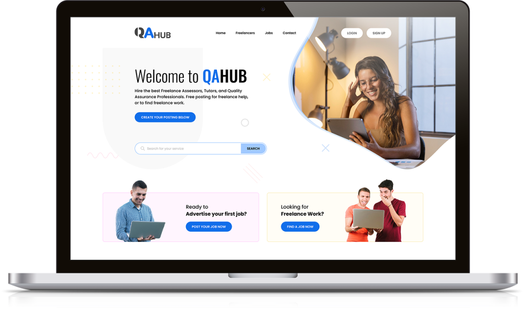 QA HUB is a UK-based platform that connects clients with freelancer assessors, tutors, and Quality Assurance professionals.